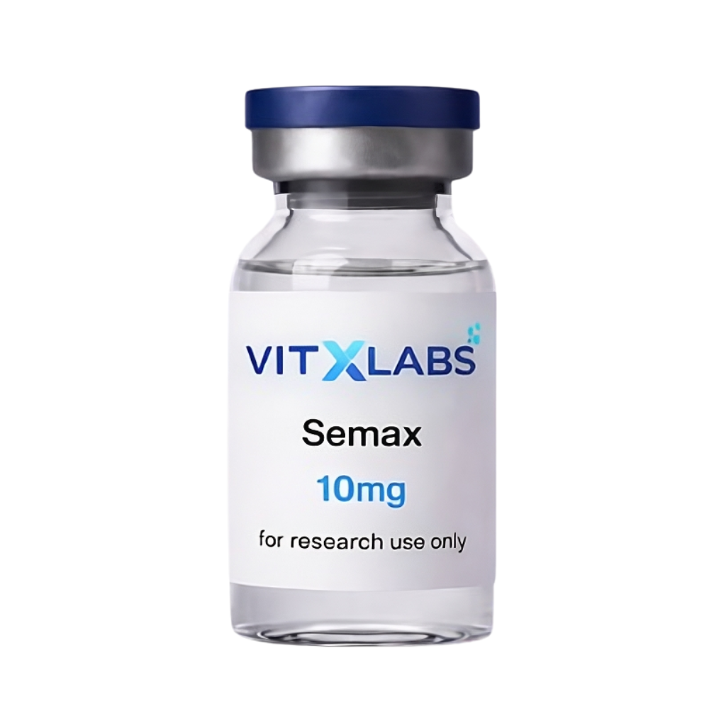Lyophilized Semax (5mg) for research use. A synthetic ACTH(4-10) analog studied in neurotrophic signaling and cognitive function research.